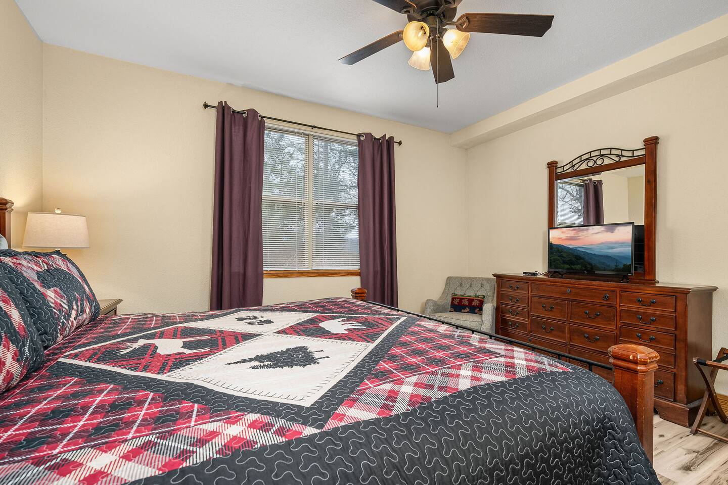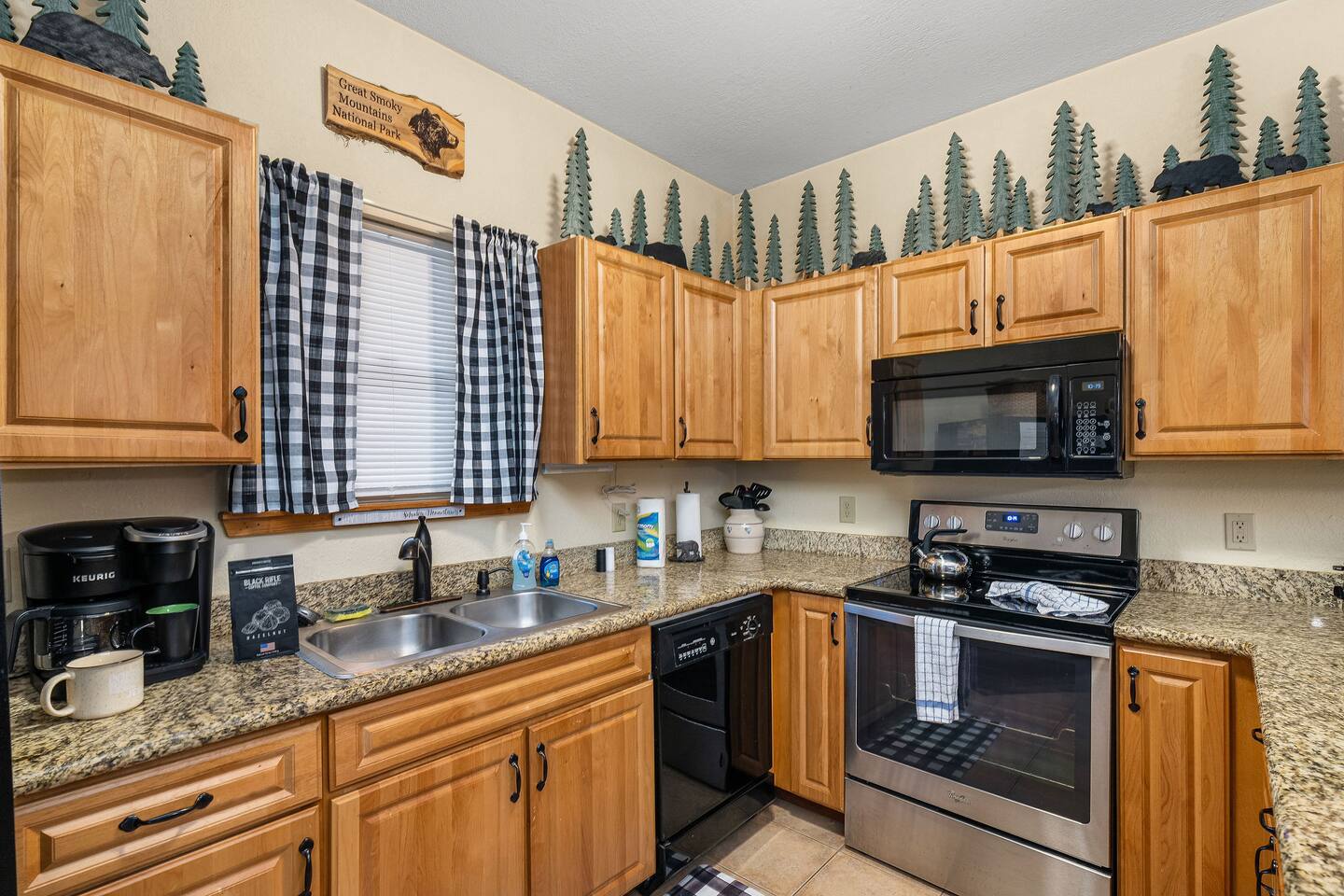 Our condominium offers the following amenities for our guests : • 2 Bedrooms & 2 Bathrooms - The master bedroom features a king-sized bed and a private en suite bathroom. Bedroom 2 has a queen-sized bed and en suite bathroom. Both bedrooms offer ceiling fans. There are also a roll away cot located in each bedroom closet (twin sized). Linens and towels provided. • A spacious open concept living area and dining area that seats 6 • A fully-stocked kitchen complete with dishes, pots/pans, microwave, stove, oven, refrigerator, & dishwasher. Features a traditional coffee maker. • Free Wi-fi with TVs in each bedroom which feature basic cable. TV in the Living room is a smart TV so use your favorite apps. • A private washer and dryer in the condo for guest use. • Front and rear patios for relaxing outdoors We look forward to hosting you, so reserve your stay with us for a relaxing Smoky Mountain vacation at Golfview Resort!
