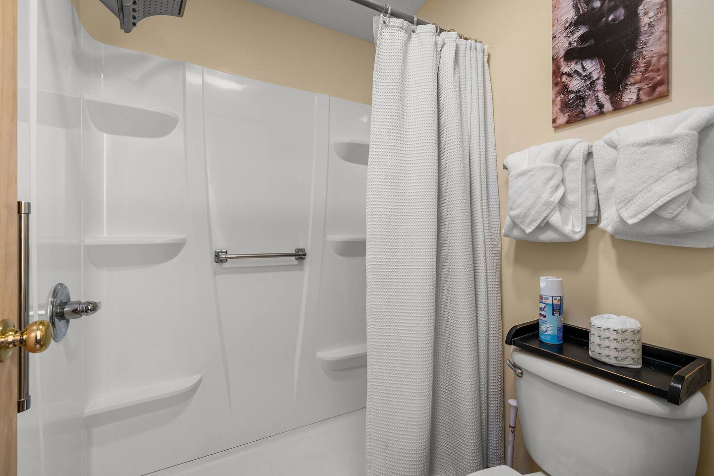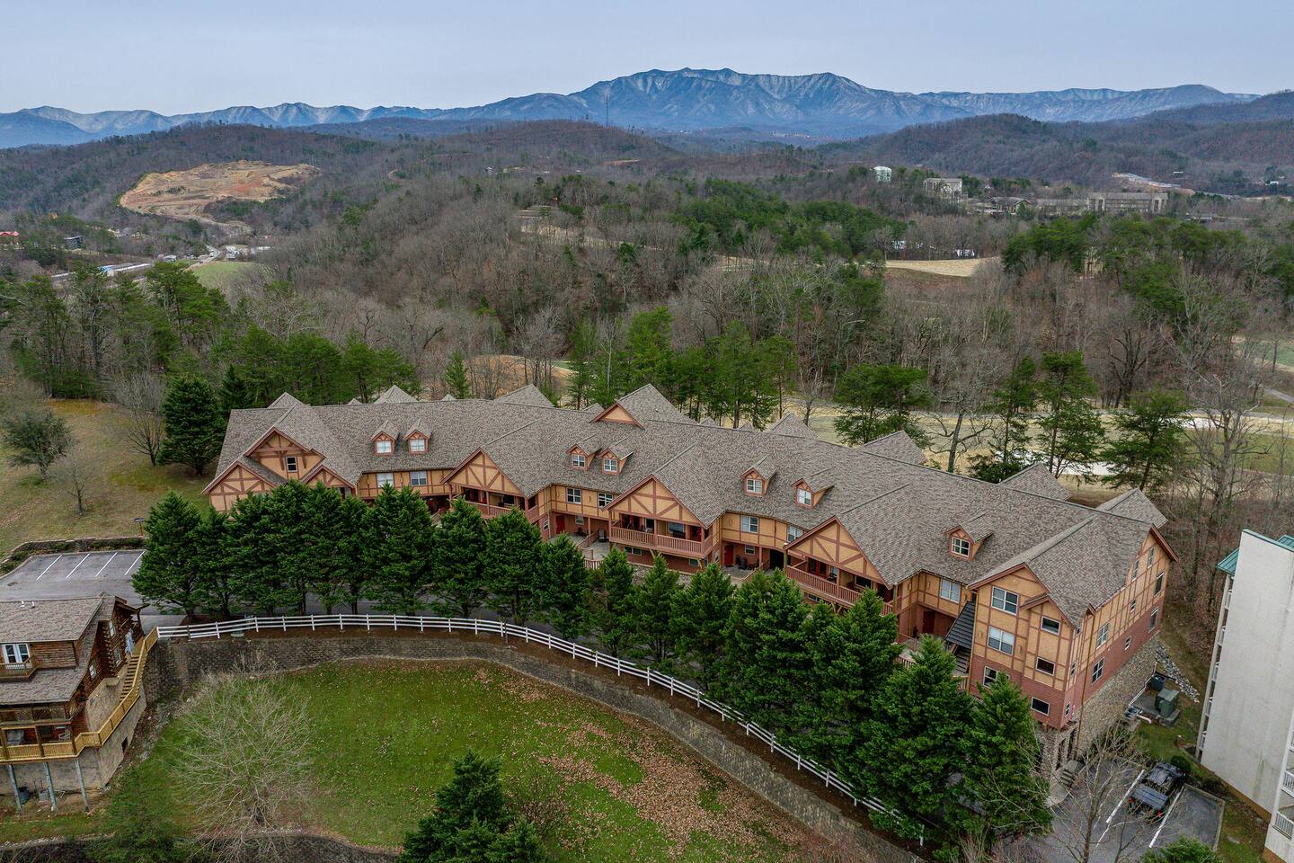 Welcome to 'Dancing Bears' at Golfview Resort, a beautifully appointed property next to the Gatlinburg Golf course, located in Pigeon Forge right off Dollywood lane. The resort is just minutes from Dollywood theme parks and local Pigeon Forge attractions like The Old Mill District & The Island. We are 2.5 miles (~7 min) from The Ripken Experience and 8 miles (20 min) to the Great Smoky Mountain National Park. The resort features a beautiful outdoor pool area with hot tub (open seasonally) & an indoor heated pool for swimming and is open year round. The building also features a covered parking garage with elevator access to the main level.